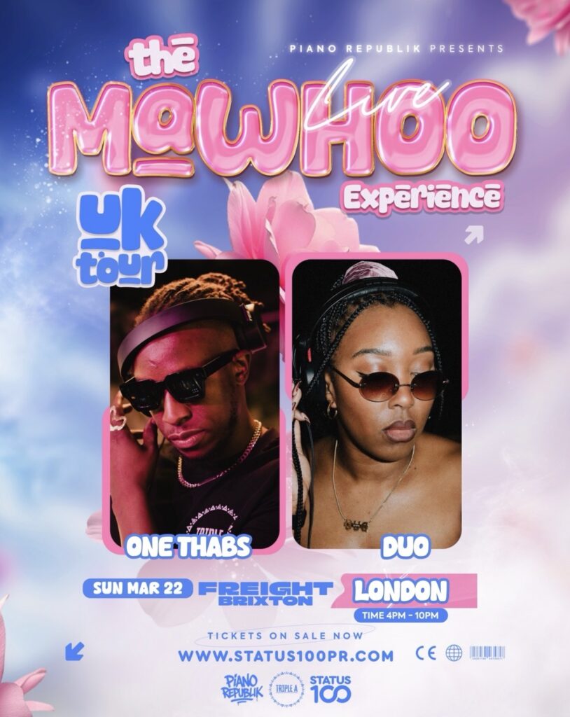 Multiple Dj’s will be spinning the hottest records on both nights. This includes The Beat 103.6FM’s very own One Thabs (who hosts The ADM Show bi-monthly). He will be live on our station on Wednesday 25th March so be sure to lock in! Up and coming woman of the afro world, Duo will also be taking to the stage.