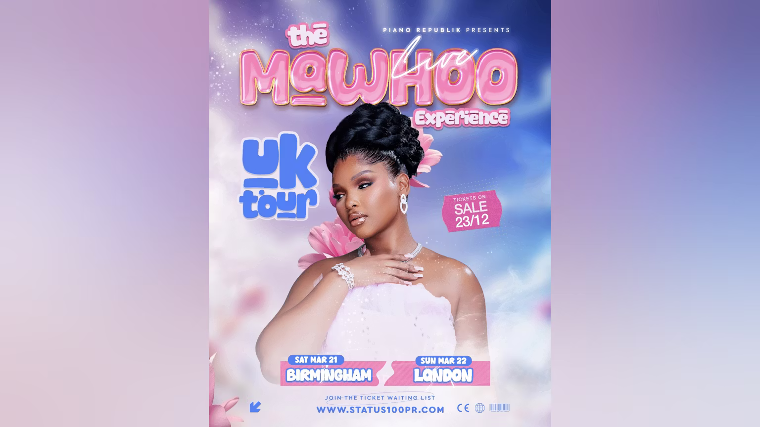 You can purchase tickets here: https://status100pr.com / https://www.fatsoma.com/e/96xaofsc/mawhoo-live-in-london?utm_source=chatgpt.com